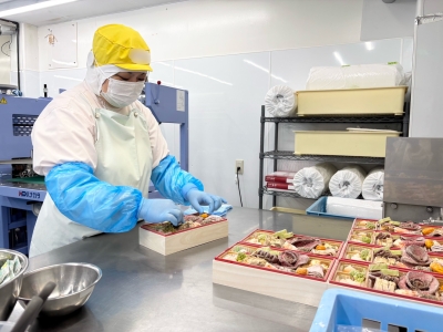最終工程では、全体の盛り込みやおかずの抜けを細かくチェックし、完璧な状態でお客様のもとへ心を込めてお届けしています。