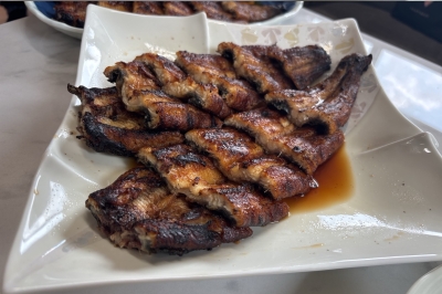 今年3月の食材探しの旅では、佐賀県の「森うなぎ屋」さんのうなぎの蒲焼と出会いました。良質な樫木炭を使用し、炭の状態や鰻に合わせて火加減を調整しながら、長年の経験と感覚で丁寧に焼き上げられています。